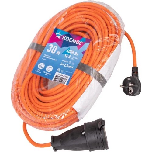 Силовой удлинитель в виде шнура, с одного конца литая вилка с другого конца прорезиненное гнездо с заземлением и защитной крышкой. Идеальный вариант для подключение садовой и рабочей техники на удалении в любых условиях. Оранжевый провод КГ (Кабель гибкий