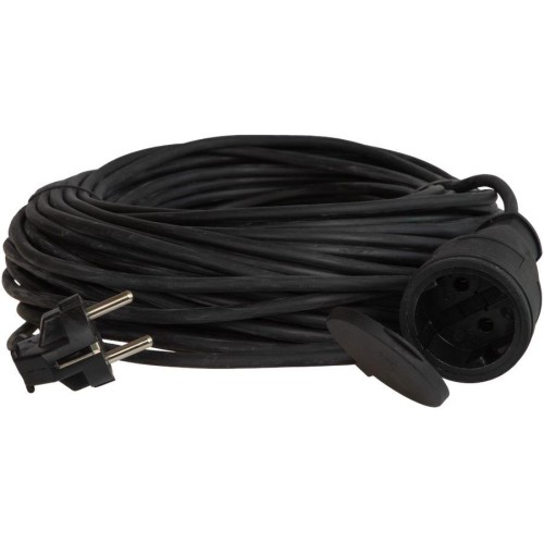 Силовой удлинитель в виде шнура, с одного конца литая вилка с другого конца прорезиненное гнездо с заземлением и защитной крышкой. Идеальный вариант для подключение садовой и рабочей техники на удалении в любых условиях. Черный кабель КГ (Кабель гибкий) - это кабель силовой очень гибкий с изоляцией и оболочкой из резины. Морозоустойчив до -40 градусов и максимальной мощностью нагрузки 3500Вт. 50м, 10А, IP44, КГ 2*1мм
