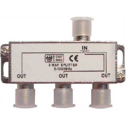 Телевизионный делитель или сплиттер предназначен для телевизионных систем и используется в домах и квартирах, где требуется подключить несколько телевизионных аппаратов к одной антенне. Сплиттер распределяет поступающий на вход сигнал поровну на его выходы, что обеспечивает одинаково четкое изображение на всех подключенных устройствах. Он имеет три выхода для сигнала и подключается с помощью стандартных F-разъемов. Делитель комплектуется необходимыми F-разъемами. Пайка внутри делителя осуществляется с использованием серебросодержащего припоя, что позволяет получить сигнал высокого качества и увеличить надежность. Делитель имеет надежный металлический корпус. Полная комплектация ТВ сплиттера (F-разъемы в комплекте) позволяет удобно и быстро монтировать телевизионный кабель и подключать аппаратуру. Данный делитель подходит для сигналов с частотой 5-1000 МГц, что соответствует стандартному эфирному телевидению.