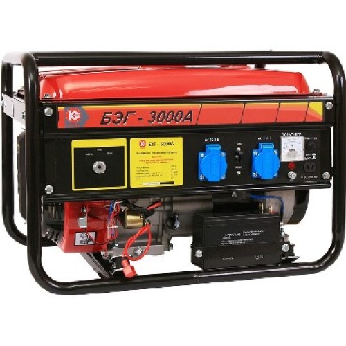 Переносной бензиновый электроагрегат с двигателем внутреннего сгорания Калибр БЭГ-3000А предназначен для автономного энергоснабжения,в повторно-кратковременном режиме,потребителей бытовых электроприборов со стандартными характеристиками сети переменного тока: напряжение – 230В,частота – 50Гц.Двигатель работает на неэтилированном бензине АИ-92.Он оснащён мембранным карбюратором и электронной системой зажигания.Модель БЭГ-3000А комплектуется аккумулятором и замком зажигания электрического стартёра.вырабатывает постоянный ток напряжением 12В для зарядки кислотных аккумуляторов; индикатор уровня топлива; электростартёр с аккумулятором; электронная система зажигания.Характеристики,Модель двигателя 170F,Тип 1 цилиндровый,4-х тактный,Способ охлаждения,Воздушный принудительный,Мощность 7.0 л.с.,Объём топливного/масляного бака 15.0/0.6 л.Номинальное число оборотов 3600 об/мин,Число оборотов на холостом ходу 3000 об/мин,Стартёр ручной/электрический,Тип топлива,Бензин АИ-92 (неэтилированный)