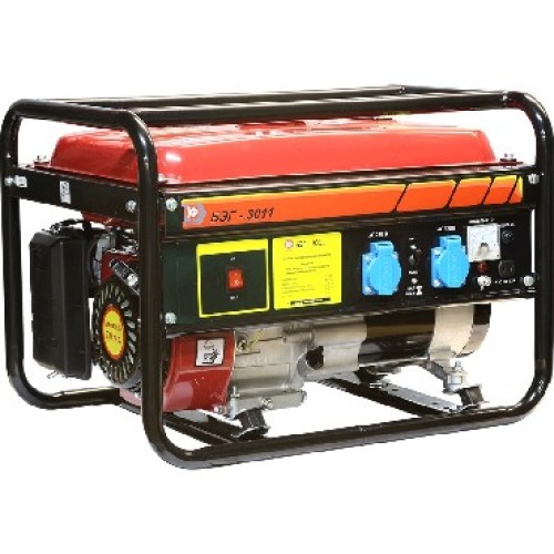 Переносной бензиновый электроагрегат с двигателем внутреннего сгорания Калибр БЭГ-3011 предназначен для автономного энергоснабжения,в повторно-кратковременном режиме,потребителей бытовых электроприборов со стандартными характеристиками сети переменного тока: напряжение – 230В,частота – 50Гц.Двигатель работает на неэтилированном бензине АИ-92.Он оснащён мембранным карбюратором и электронной системой зажигания.Для запуска двигателя служит ручной тросовый возвратный стартёр.вырабатывает постоянный ток напряжением 12В для зарядки кислотных аккумуляторов; индикатор уровня топлива; электронная система зажигания; ручной стартёр.Характеристики,Модель двигателя 170F,Тип 1 цилиндровый,4-х тактный,Способ охлаждения воздушный принудительный,Мощность 7.0 л.с.,Объём топливного/масляного бака 15,0 / 0,6 л,Номинальное число оборотов 3600 об/мин,Число оборотов на холостом ходу 3000 об/мин,Стартёр ручной,Тип топлива,Бензин АИ-92 (неэтилированный),Тип масла SAE 5 W-30/ SAE 10 W-30