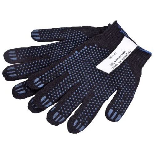 Перчатки х/б с ПВХ 3 нити черные 10 класс - это рабочие перчатки из натурального хлопка, который позволяет коже рук дышать. На ладонь нанесено точечное ПВХ-покрытие. Такое покрытие обеспечивает лучшее сцепление с предметами и исключает их выскальзывание. Изделие защищает руки от натирания мозолей, мелких царапин и различных загрязнений.ЦЕНА ЗА ПАРУ