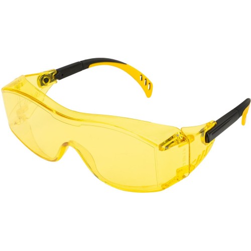 Очки защитные открытые Denzel 89202 с увеличенными поликарбонатными желтыми линзами предназначены для защиты глаз от механических повреждений и УФ-излучения. Очкам присвоен класс механической прочности F, они обеспечивают защиту от высокоскоростных частиц с низкоэнергетическим ударом (скорость частиц до 45 м/с). Легкие универсальные очки используются во время работы с электро- и бензоинструментом, на производстве и в быту.ПреимуществаВысокие эксплуатационные свойства — линзы из высокопрочного поликарбоната имеют оптический класс 1 и подходят для длительного ношения.Отличная видимость — высокотехнологичное двустороннее покрытие линз предотвращает их запотевание.Долговечность — очки устойчивы к поверхностному разрушению при попадании мелкодисперсных аэрозолей.Продуманная конструкция — особая форма линз обеспечивает боковую и надбровную защиту, а также позволяет носить защитные очки вместе с коррригирующими.Комфортная посадка — двухкомпонентные дужки регулируются по длине и углу наклона.