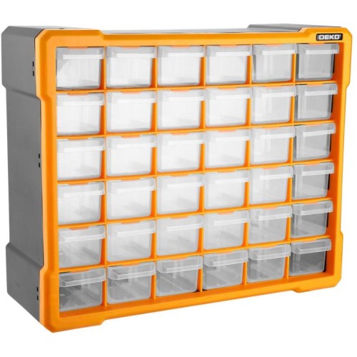 Система хранения DEKO ;RDKPS36 ;выполнена в форме вертикального кейса с выдвижными ящиками, служит для хранения и транспортировки крепежных изделий. Качественное исполнение гарантирует долгий срок службы ящика. Имеет 36 съемных секций. Система хранения выполнена из пластика.Габаритные размеры (см): 41х14х32,5Размеры ячеек (см): ;12х5.7х4.5