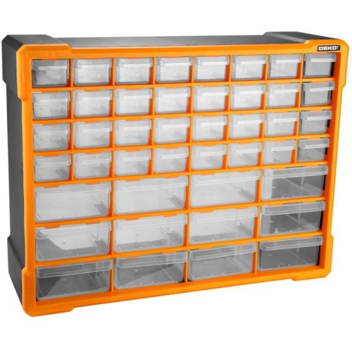 Система хранения ;RDKPS44 ;представляет собой удобный контейнер с 44 ячейками для хранения инструментов и аксессуаров. Качественное исполнение гарантирует долгий срок службы системы хранения.Габаритные размеры (см): 51х15.8х39.3. Система хранения выполнена из пластика.Размеры ячеек (см): 13.5х11.3х5.5 - 12 шт; 13.5х5.2х3.9 - 32 шт