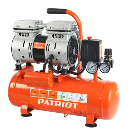 Макс. производительность, л/мин 120. Макс. мощность, кВт 0,65. Напряжение питания от сети, В 220. Частота вращения, об/мин 1380. Регулировка давления Да. Макс. рабочее давление, бар 8. Манометр Да. Тип смазки безмасляный. Тип привода прямой. Количество цилиндров/ступеней, шт 2/1. Объем ресивера, л 10. Тип штуцера быстросъемный. Вес, кг 14.6.
