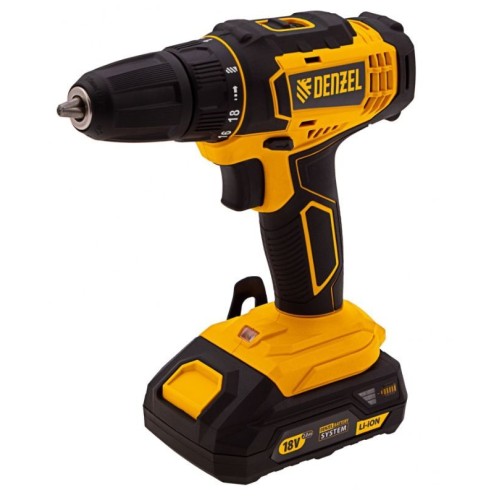 DENZEL CDL-18-02BM Дрель-шуруповерт аккумуляторная , LI-ION, 18 В, 2 аккумулятор 26116