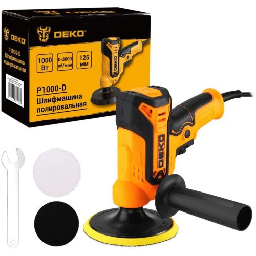 Шлифмашина полировальная сетевая DEKO P1000-D предназначена для полирования и шлифования различных лакокрасочных, полимерных и прочих покрытий. Дополнительная рукоятка обеспечивает удобство работы. В комплект входит гаечный ключ. Крепление оснастки производится на липучку. Технические характеристики: Мощность: 1000 Вт Напряжение/частота: 220 В/50 Гц Число оборотов: 0-3000 об/мин Диаметр диска: 125 мм Резьба шпинделя: М14 Плавный пуск: нет Шлифмашина поставляется в картонной коробке.