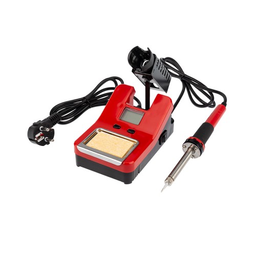 Паяльная станция (160...520 °С) цифровой дисплей 230 V/48 Вт предназначена для ручного монтажа радиоэлементов. Её можно использовать как в домашних условиях, так и в профессиональных лабораториях. Специально разработанный современный корпус имеет компактный и стильный дизайн. Для профессионального контроля темп нагрева жала паяльника на корпусе расположены кнопки регулировки и цифровой дисплей с синей подсветкой. темпный диапазон нагрева жала варьируется в пределах 160...520°С. Станция комплектуется паяльником оптимальной мощности 40 Вт, металлическим держателем паяльника, губкой для очистки жала в ложементе. Pпотр станции: AC 230 V/48 Вт. Данная паяльная станция является комплектом с лучшим соотношением цены и качества.