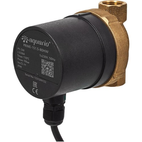 Насос предназначен для установки и эксплуатации внутри помещений, в сухом проветриваемом месте. Температура перекачиваемой воды от +1 до +110°С. Температура окружающей среды +1 до +40°С. Максимальное давление воды в корпусе насоса: 10атм (1Мпа). Насосы серии PRIME относятся к классу высокоэффективных электроприборов с классом потребления электроэнергии А. Электродвигатель: высокоэффективный синхронный двигатель с редкоземельными магнитами и электронным управлением. Класс изоляционных материалов двигателя: H. Класс внешней защиты: IP 44. Режим работы: постоянно включенный. Присоединительный размер: 1/2”внутр.резьба. Монтажная длина корпуса: 80мм. Корпус насоса: бронза. Рабочее колесо: технополимер. Исполнение без механического уплотнения вала. Во время эксплуатации ротор двигателя и подшипники смазываются и охлаждаются перекачиваемой жидкостью. Мощность P1, Вт 5 Вт/ч. MAX напор, м 2 м. MAX расход, л/мин 15 л/мин.