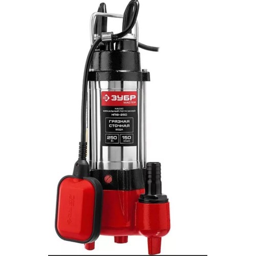 ЗУБР НПФ-250 фекальный насос реимущества Тип по груж ной фе каль ный Мощность, Вт 250 Производительность, л/мин 150 Напор, м 7.5 Макс. глубина установки, м 5 Макс.размер пропускаемых частиц, мм 15 Материал корпуса ме тал, чу гун Присоединительная резьба, дюйм 1 1/4 Термопредохранитель есть Откачка загрязненных бытовых, сточных и смешанных вод, содержащих крупные включения (фекалии), чистых, дождевых, дренажных и грунтовых вод Корпус из чугуна и нержавеющей стали значительно увеличивает срок службы устройства Поплавковый выключатель обеспечивает автоматическое включения/выключения при изменении уровня воды Регулировка уровней включения/выключения насоса Для исключения образования воздушных пробок в рабочей полости насоса имеется клапан Во время эксплуатации насос не требует никакого обслуживания Термопредохранитель для защиты от перегрева Клапан, защищающий от образования воздушных пробок в рабочей полости Соединительный штуцер 1 1/4