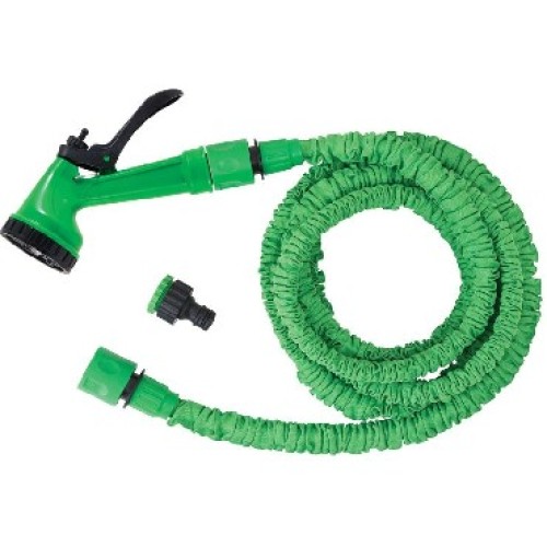 Специальный растяжной шланг увеличивается в длину в 3 раза. Диаметр 1/2". Изготовлен из сверхпрочного латекса, благодаря чему дольше сохраняет форму, выдерживает практически любое натяжение Состав набора: шланг растяжной (номинальная длина – 2,5 м, максимальная растяжимость - 7,5 м) с двумя соединителями. пистолет для полива (7 режимов полива) адаптер с переходником 1/2 и 3/4 материал: ШЛАНГ -ЛАТЕКС, пластик, полиэстер, металл