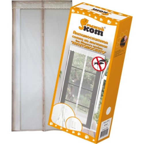 Сетка антимоскитная на магнитах "Капутомоскито". Размеры: 100*210 см. Материал изготовления: полиэстер 100%, плотность 45 гр/кв. метр. Цвет: бежевый. В комплект входят: -2 створки москитной сетки с 9 парами магнитов, - декоративный ламбрекен, - кнопки (10 шт.), - двусторонний скотч (10 шт.) для крепления к дверному проему Упаковка: цветная коробка.