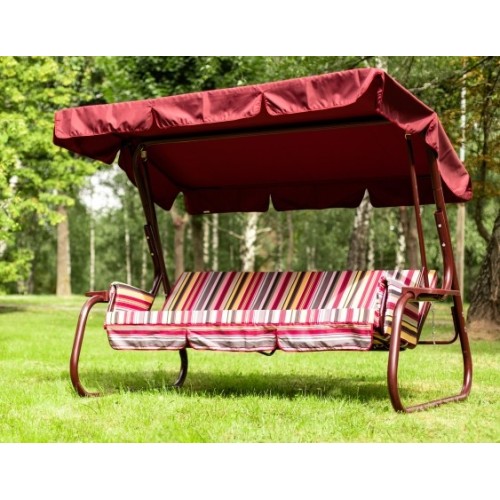 Габаритные размеры изделия (ДхШхВ) 2365х1380х1665 мм, Габаритные размеры сиденья,спинки и тента (ДхШ) сиденья: 1782х532 мм, спинки: 1782х532 мм, размер тканевого тента: 2100х1455 мм, Максимальная нагрузка 280 кг, Каркас: труба стальная Ф51х1,4 мм; полимерное покрытие; полка - 2 шт. Мягкий элемент: ткань 45% п/э – 55% хлопок, плотность 108-111г/м2, наполнитель мягкого элемента поролон листовой (толщиной 80 мм), наполнитель боковин – поролон (толщиной 20мм). Боковины – 2шт. Тент: тент ткань с водоотталкивающей отделкой 100% п/э плотность 141г/м2 Регулировка спинки: осуществляется звеньями цепи на требуемый угол наклона, с возможностью фиксации в горизонтальном положении. Размеры упаковки: 626х300х2080 мм, Вес изделия: нетто 50,8 кг. брутто 52,7 кг.
