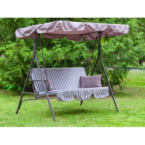 Максимальная нагрузка, кг: 160.Каркас: труба стальная O38х1,2мм; дуга опорная - O32х1,4ммполимерное покрытие. Мягкий элемент: ткань 45% п/э 55% хлопок, плотность 108-111г/м2, наполнитель мягкого элемента аэрофом 50мм, Основание сидения ткань полипропиленовая. Внимание: подушки в комплект поставки не входят Тент: ткань с водоотталкивающей отделкой 100% п/э плотность 120г/м2