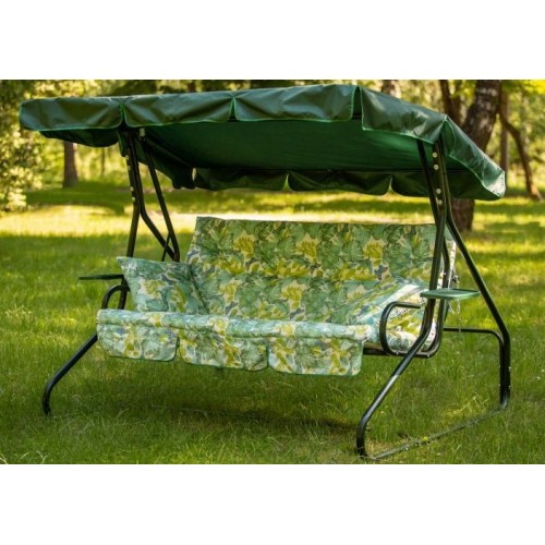 Максимальная нагрузка, кг: 280. Каркас: труба стальная O38х1,2мм; полимерное покрытие; полка - 2 шт. Мягкий элемент: ткань 45% п/э – 55% хлопок, плотность 108-111г/м2, наполнитель мягкого элемента 5см аэрофом + синтепон, основание спанбел. Увеличенная высота спинки. Декор мягкого элемента тафтингом. Наполнитель подушек синтепон. Подушки – 2шт. Тент: ткань с водоотталкивающей отделкой 100% п/э, плотность 80г/м2 Регулировка спинки: осуществляется звеньями цепи на требуемый угол наклона, с возможностью фиксации в разложенном положении.