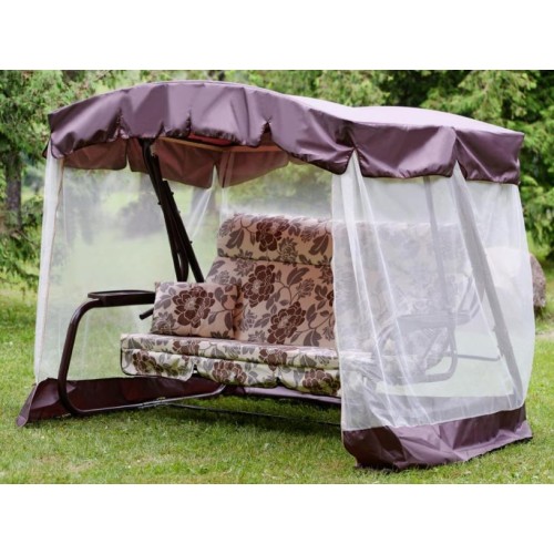 Габаритные размеры изделия (длина х ширина х высота), мм: 2442 ( 20)х1440 ( 20)х1810 ( 20) Габаритные размеры сиденья,спинки и тента (длина х ширина), мм: размеры сиденья: 1790х540 размеры спинки: 1790х755 размеры тента: 2220х1430 Каркас: труба стальная 51х1,4мм; полимерное покрытие; полка - 2 шт. Мягкий элемент: ткань 40% п/э 60% хлопок, плотность 108-111г/м2, наполнитель мягкого элемента поролон толщиной 80 мм, наполнитель подушек - синтепон (полотно полиэфирное объемное). Подушки 4шт. Тент: ткань с водоотталкивающей отделкой 100% п/э плотность 125г/м2 или 90г/м2, с противомоскитной сеткой (полотно гардинное основовязаное 100% п/э плотность 39г/м2 - фиксация сетки на тканевом тенте осуществляется с помощью горизонтальных и вертикальных застежек молний. Регулировка спинки: для раскладывания спинки поднимается ручка трансформации и фиксаторы, расположенные на спинке, защелкиваются на дуге.