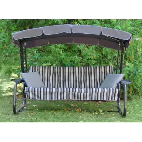 Габаритные размеры изделия (длина х ширина х высота), мм: 2586(±20)х1440(±20)х1737(±20). Габаритные размеры сиденья,спинки и тента (длина х ширина), мм: размеры сиденья (по мягкому элементу): 2000х540 размеры спинки (по мягкому элементу): 2000х660 размеры тента: 2430х1430 Максимальная нагрузка, кг: 320 Каркас: труба стальная O60х1,5мм; полимерное покрытие; полка - 2 шт. Мягкий элемент: ткань 40% п/э; 60% хлопок, плотность 220-230г/м2, наполнитель мягкого элемента поролон листовой + синтепон ( общий толщиной 100мм). Подушки – 2шт. Увеличенная длина сиденья. Декор сиденья и спинки пуговицами (или тафтингом) Тент: ткань с водоотталкивающей отделкой 100% п/э плотность 125г/м2 или 90г/м2. Регулировка спинки: осуществляется звеньями цепи на требуемый угол наклона, с возможностью фиксации в горизонтальном положении; Размеры упаковки: Место 1: 908(±5)х121(±5)х1642(±5); Место 2: 665(±5)х305(±5)х2010(±10). Вес изделия: нетто, кг – 66; брутто, кг – 69.