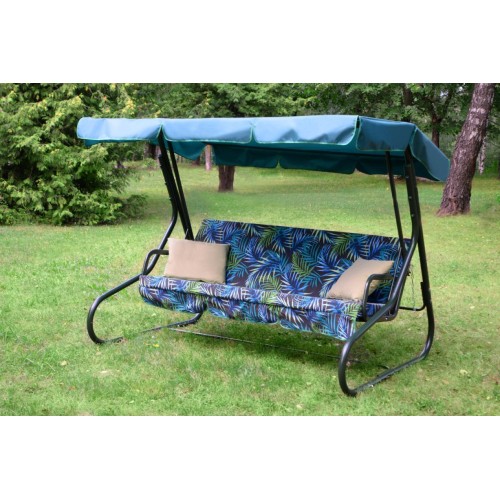 Габаритные размеры изделия (длина х ширина х высота), мм: 2072х1380х1664; размеры сиденья: 1782х532; размеры спинки: 1782х532; размеры тента: 2100x1455. Максимальная нагрузка, кг: 250, Каркас: труба стальная O45х1,4мм; полимерное покрытие; Мягкий элемент: ткань 40% п/э – 60% хлопок, плотность 220-230г/м2, наполнитель мягкого элемента поролон (толщиной 80 мм), наполнитель подушек – крошка поролона. Подушки - 2шт. Тент: Тент ткань с водоотталкивающей отделкой 100 п/э плотностью 125-130г/м2. Регулировка спинки: осуществляется звеньями цепи на требуемый угол наклона, с возможностью фиксации в горизонтальном положении.