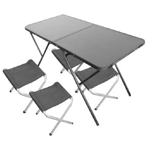 Комплект "В поход" Стол складной 120x60x68.5 Размер в сложенном виде: 60x6.4x60 см Материал: алюминий, столешница МДФ, пластик Максимальная нагрузка на стол - 30 кг Диаметр трубки 22*0,9 мм МДФ 5 мм Максимальная нагрузка на стул 80 кг Вес: 8,1кг.