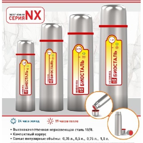 БИОСТАЛЬ Облегченная версия 24ч- холод, 19ч- тепло, компактный корпус, высококачественная нержавеющая сталь. Стальной. Объем 1л