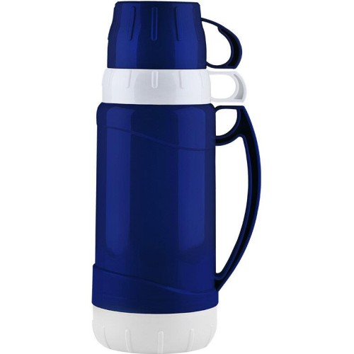 Термос изготовлен из пластмассы, герметичная конструкция препятствует проливанию и подтеканию жидкости. Компактный, имеет легкий вес, удобно брать с собой. Преимущества: - Стеклянная колба; - Две чашки в комплекте; - Окрашенный корпус. Идеально подходит как для горячих, так и для холодных напитков. Может быть использован во время отдыха, на работе, в путешествии. Материал корпуса: пластик, силикон; Материал колбы: стекло; Количество чашек: 2 шт; Объем: 1,8 л; Цвет: синий.