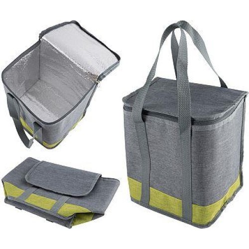 Цвет - серый Размер: 25x20х28см Объем: 13 литров. Материал 300D полиэстер. Теплоизолирующий слой: ламинированный алюминий + вспененный полиэтилен, толщина 3 мм.
