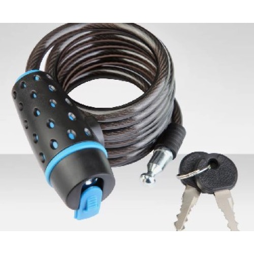 Трос-замок 87318 с ключом, со стальным тросом 8х1800 мм, чёрная оболочка, чёрно-синий замок