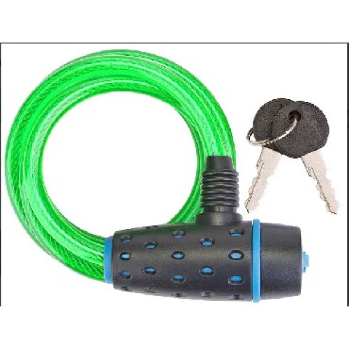 Трос-замок 87318 с ключом, со стальным тросом 8х1800 мм, зелёная оболочка, чёрно-синий замок