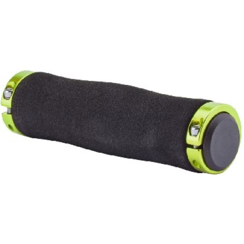 Грипсы XH-GN02BL, длина 130 мм, двухсторонняя фиксация при помощи винтов, материал EVA черный, с зелеными алюминевыми кольцами