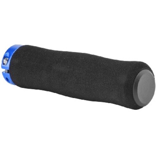 Грипсы XH-GN01BL, длина 130 мм, односторонняя фиксация при помощи винтов, материал EVA черный, с синими алюминевыми кольцами